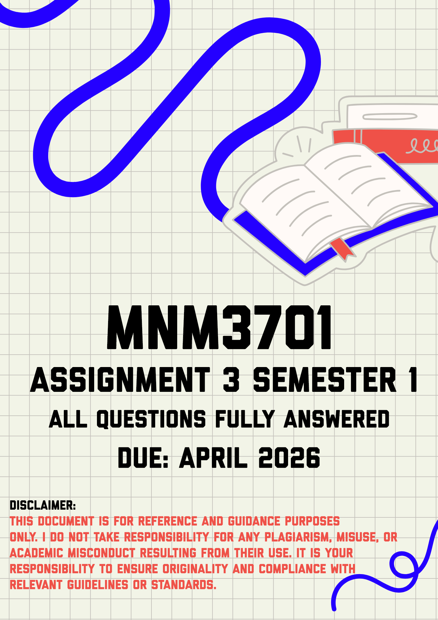 MNM3701 Assignment 3 (Portfolio) Semester 1 Memo | Due April 2026. All questions fully answered.