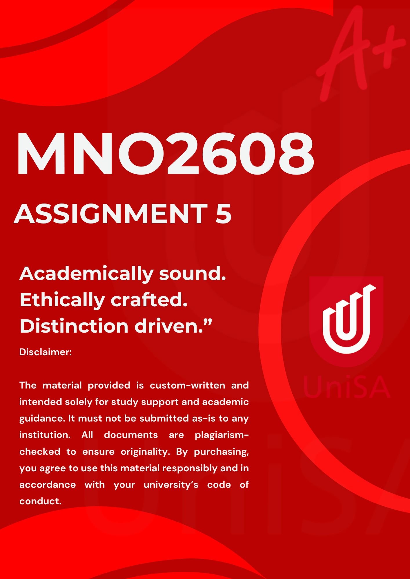 MNO2608 ASSIGNMENT 5 SEMESTER 2 2025 ANSWERS {DUE DATE 2025}