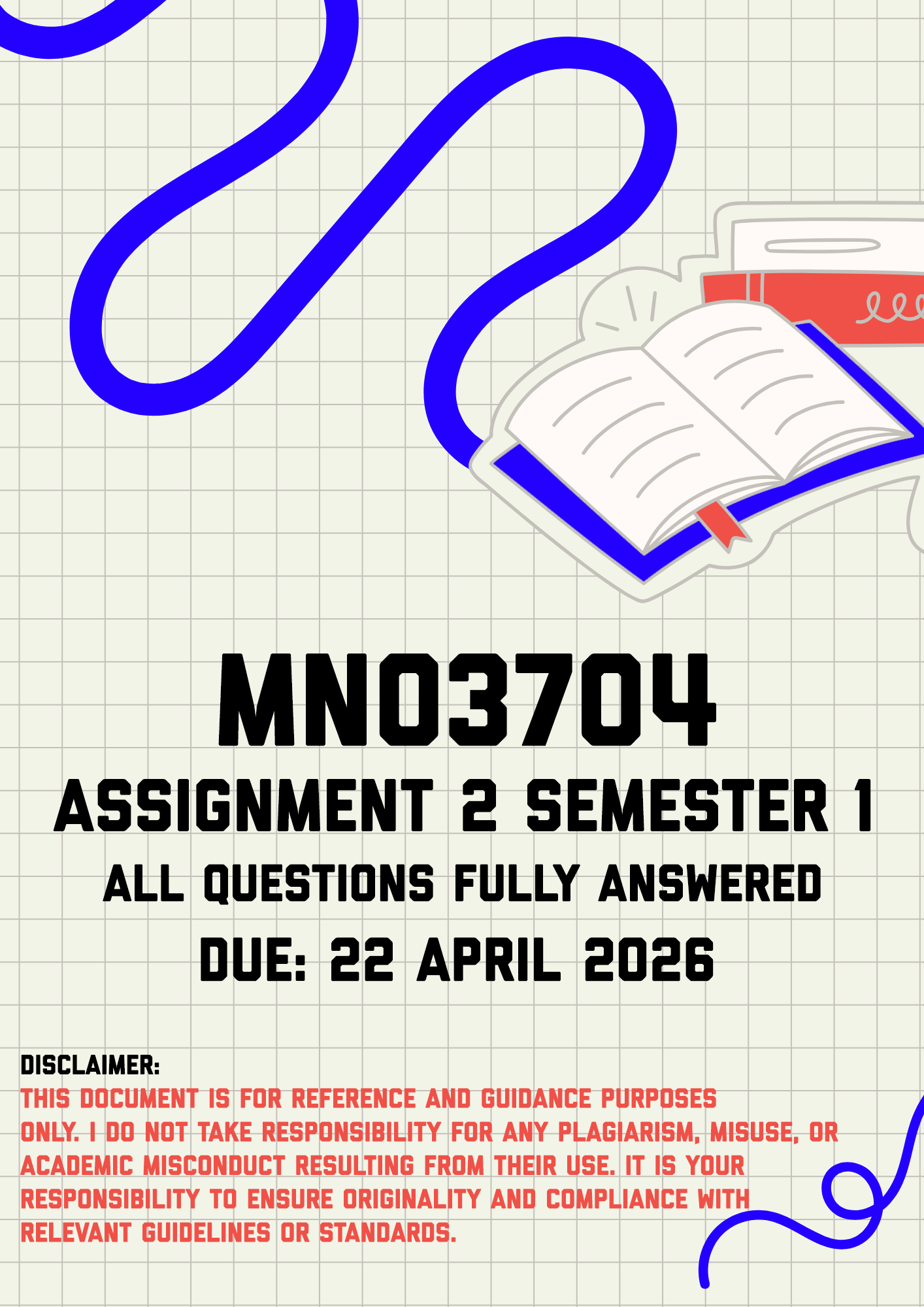 MNO3704 Assignment 2 Semester 1 Memo | Due 22 April 2026. All questions fully answered. Question 1 [10]