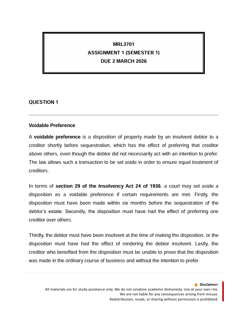MRL3701 Assignment 1 Semester 1 2026 (Fully Answered) – Due 2 March 2026 (VTSA)