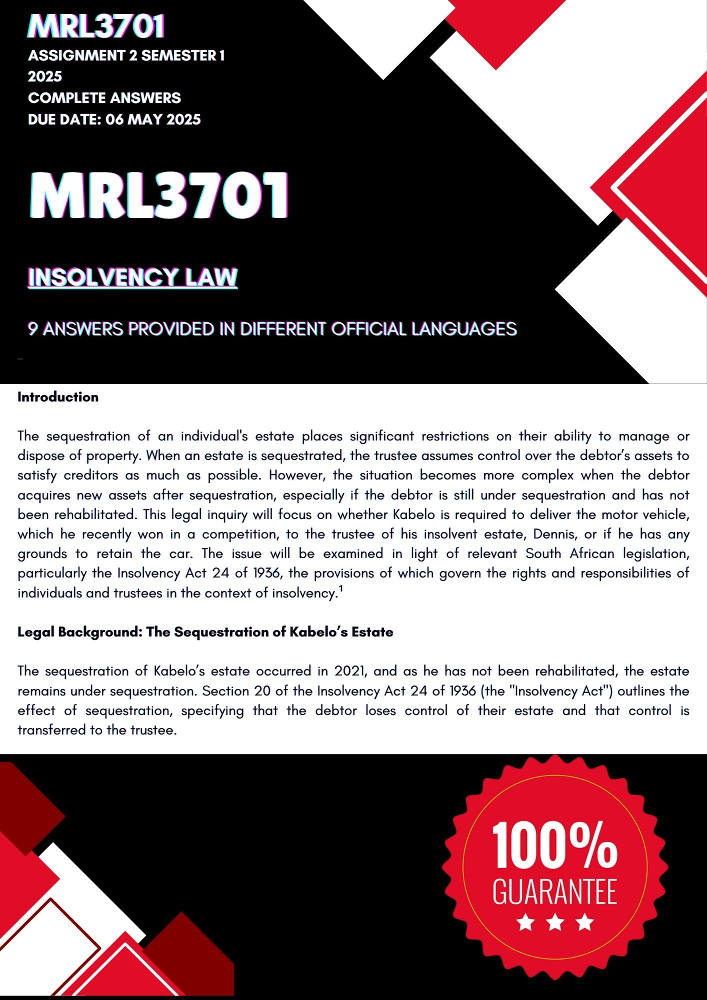 MRL3701 ASSIGNMENT 2 SEMESTER 1 2025 COMPLETE ANSWERS (DUE DATE: 06 MAY 2025) {Answers Provided in multiple official languages}}