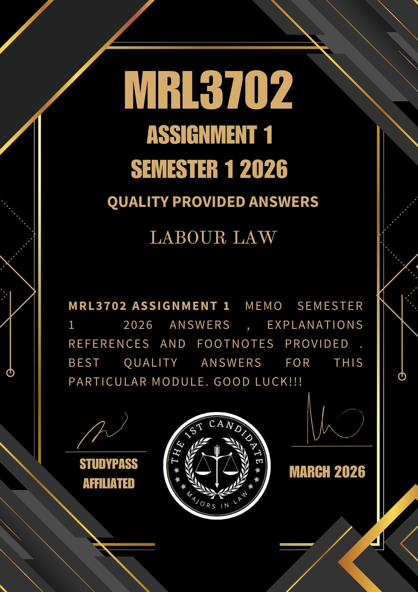 MRL3702 ASSIGNMENT 1 SEMESTER 1 2026 _ DUE DATE MARCH 2026 /100% TRUSTED ANSWERS, REFERENCES AND EXPLANATIONS/