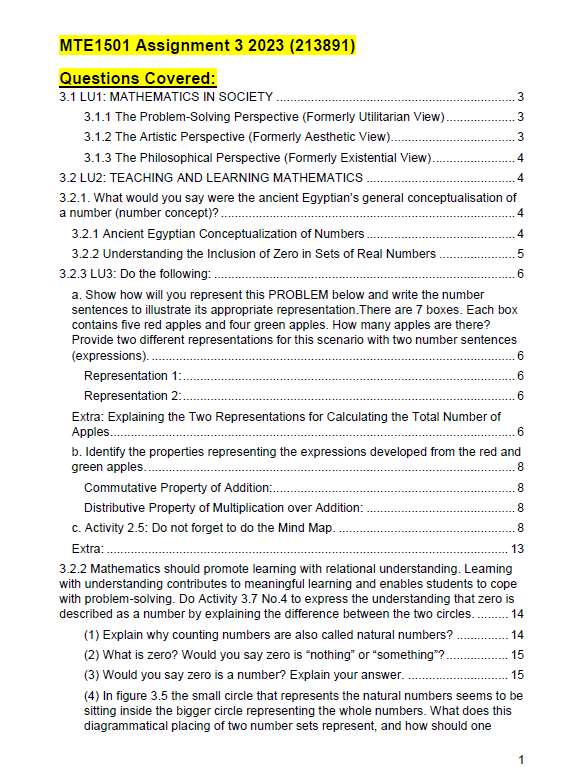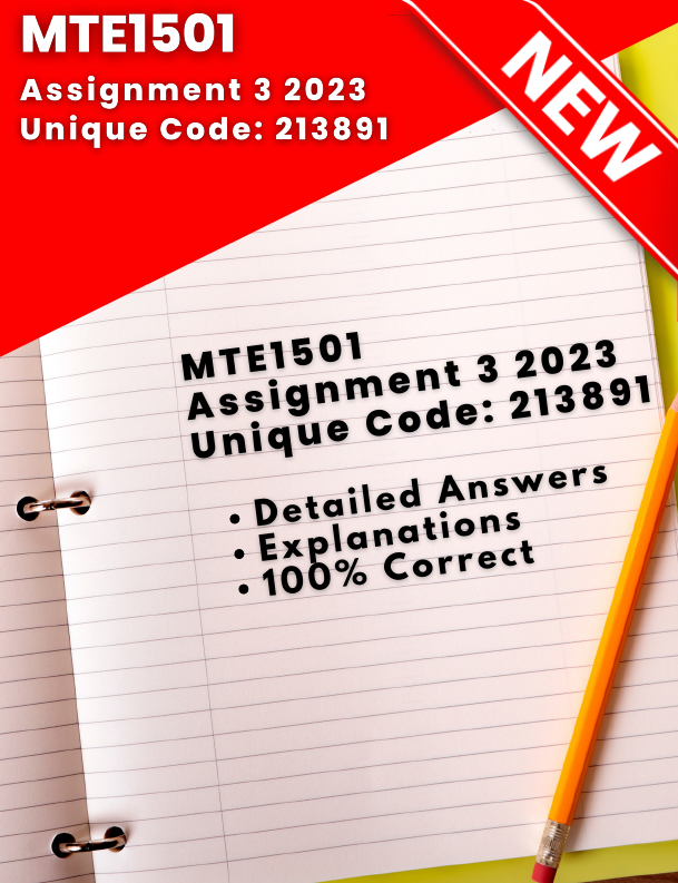 MTE1501 Assignment 3 (Detailed Answers) 21 July 2023. Answers are accurate and reliable, well explained and will ensure you get that A+.
