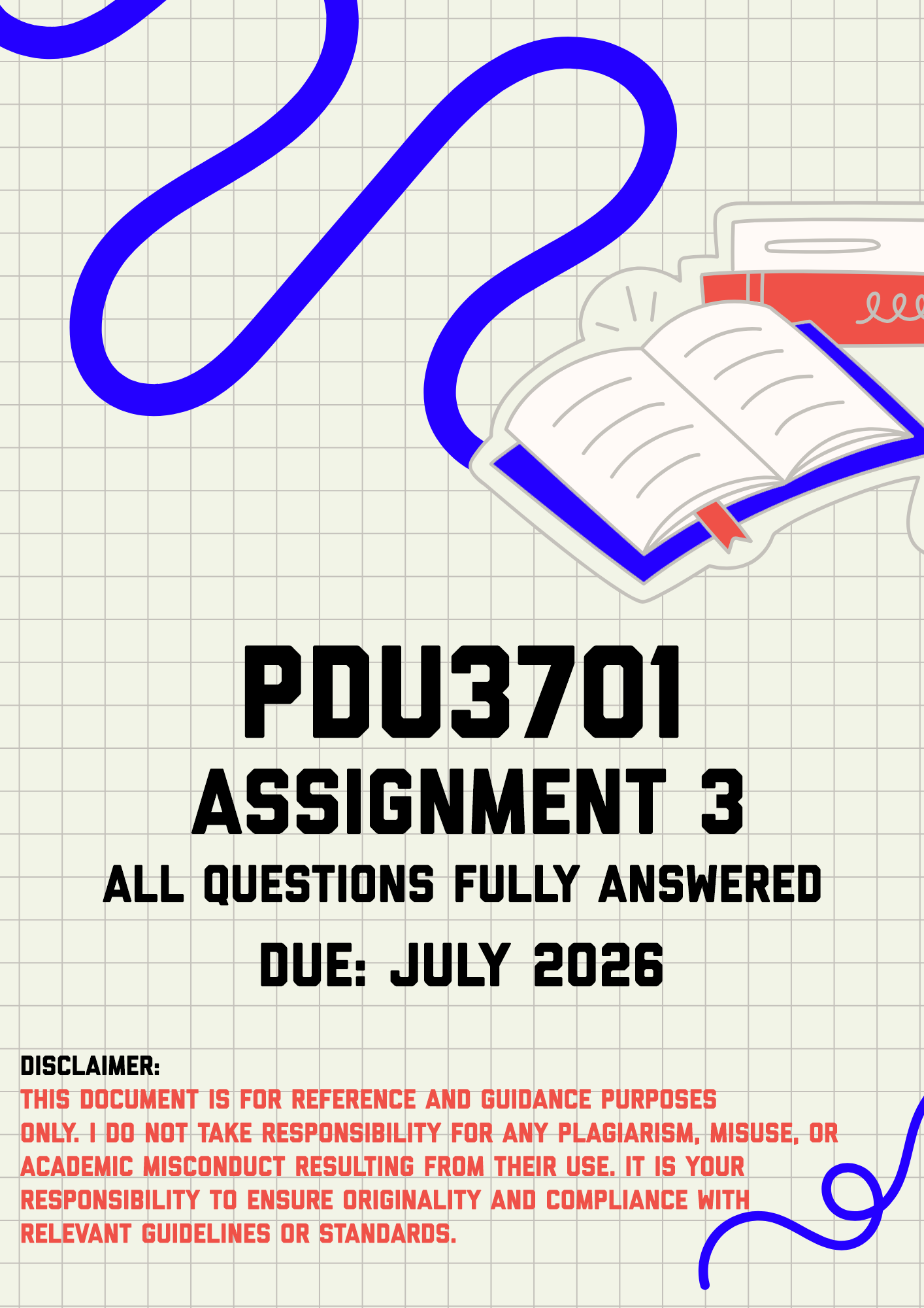 PDU3701 Assignment 3 Memo | Due July 2026. All questions fully answered. Question 1