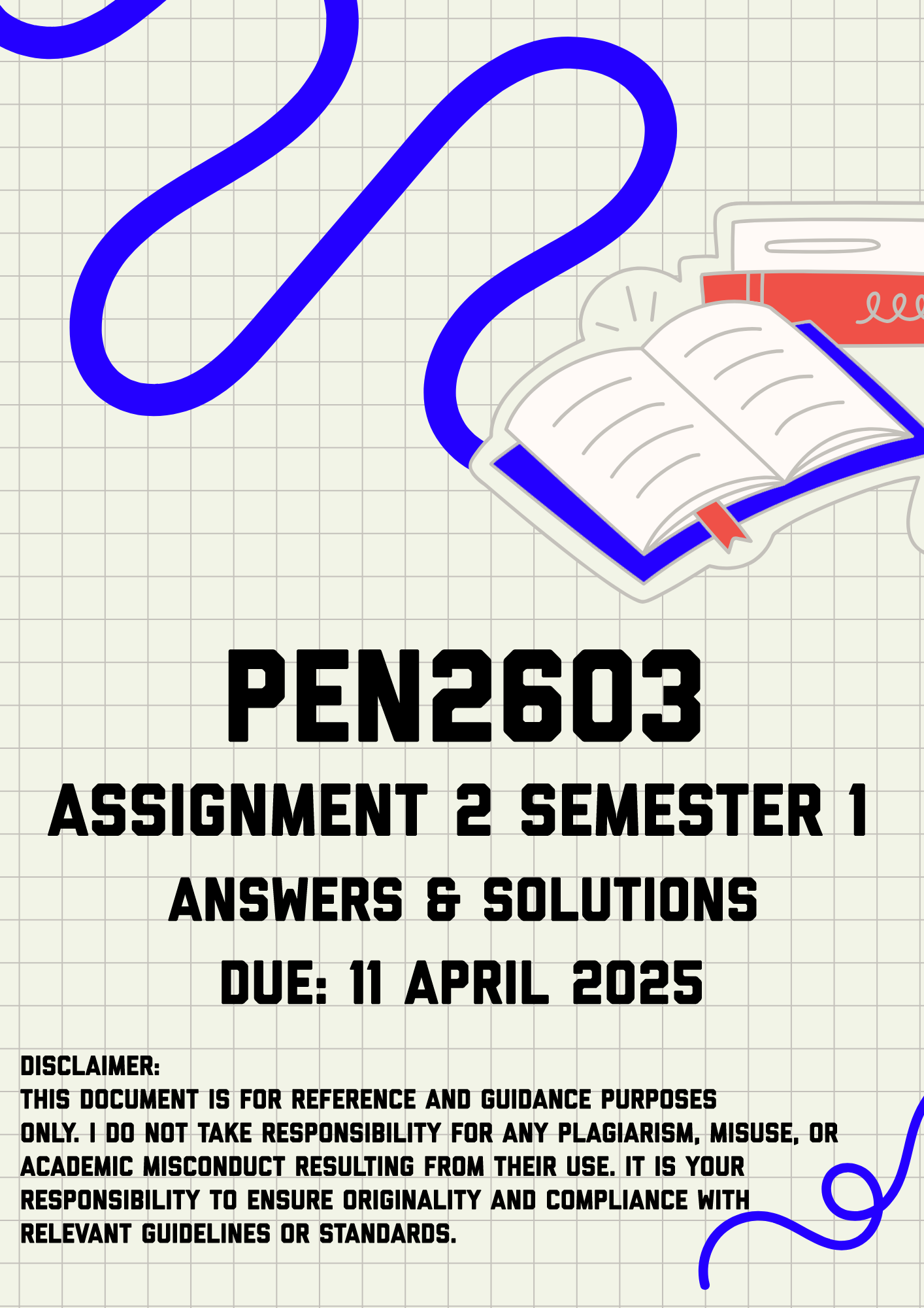 PEN2603 Assignment 2 Semester 1 Memo | Due 11 April 2025. All questions fully answered. SECTION A ο Question 1 1. What is your view on the statement: Community projects remain key to building and securing community trust in the rehabilitation [of offenders] and the system of parole. Please explain your answer in detail. Question 2 2. Define the concept of community corrections in your own words. SECTION B CASE STUDY Read the following case study and write an essay-style report. Be comprehensive yet precise in your discussion and cover as much detail as possible. Imagine you are the head of a community corrections office in South Africa, responsible for the overall management and daily operations. Your office manages a diverse group of offenders under correctional supervision and parole, many of whom face complex social challenges, including unemployment, stigmatisation and substance abuse issues. You have been tasked by the National Commissioner of Correctional Services to prepare a detailed report on the operations of your office. Your report should include an overview of your officeβs structure, the job roles and responsibilities of community corrections officials under your leadership, the aim and objectives of your office, and the offender admission process. The purpose of this report is to provide the National Commissioner with insight into the strengths, current practices, and potential areas for improvement within the community corrections system.