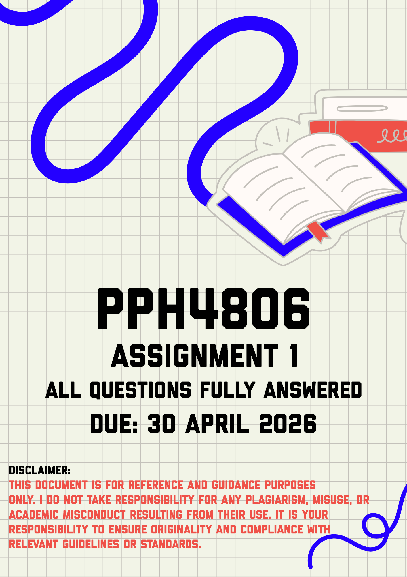 PPH4806 Assignment 1 Memo | Due 30 April 2026. All questions fully answered. 1.Introduction (5)