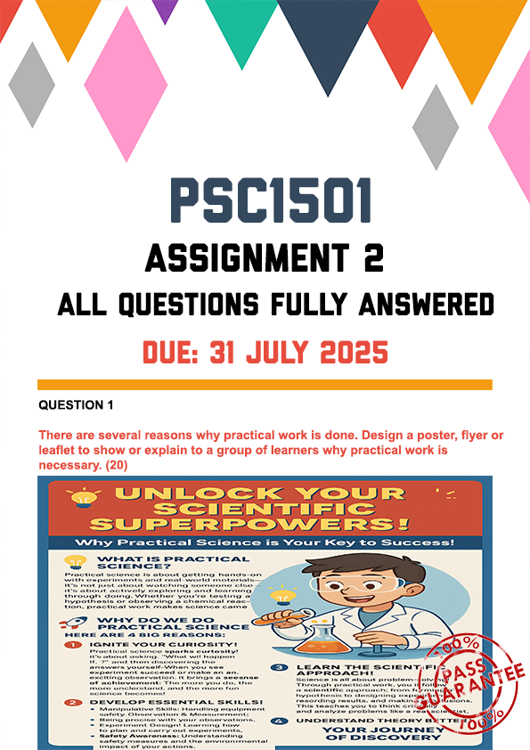 QUESTION 1 1. There are several reasons why practical work is done. Design a poster, flyer or leaflet to show or explain to a group of learners why practical work is necessary. (20) 