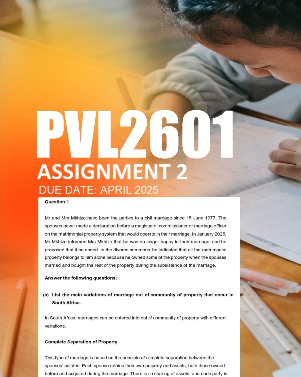 (a) List the main variations of marriage out of community of property that occur inSouth Africa.