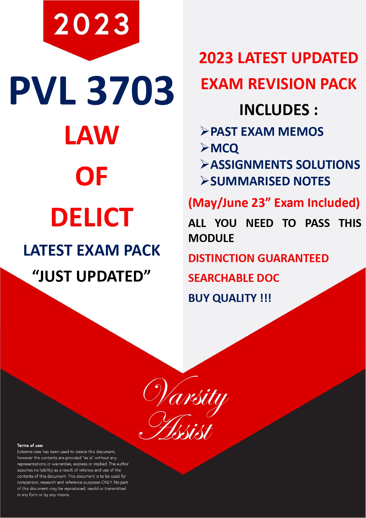 PVL3703-(Law of Delict) “2023” (This is the latest pack updated 2023)⭐⭐⭐⭐⭐ Past Memos (Inc. May 2023 Exam ) Assignment Solutions/Notes/Mcq (Buy Quality!!)Searchable doc💯