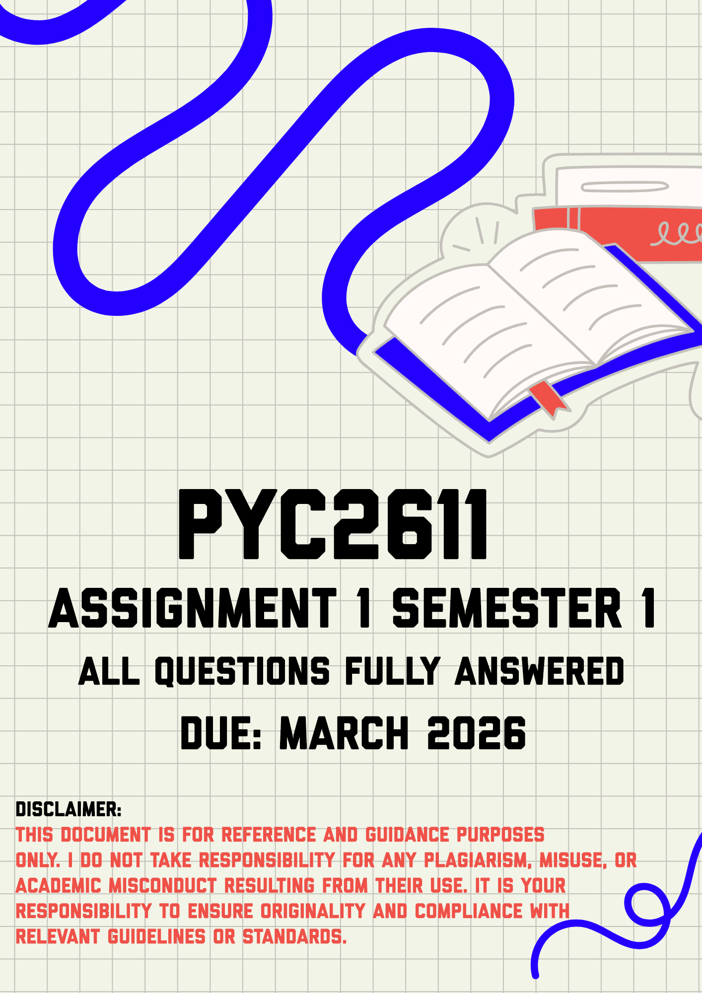 PYC2611 Assignment 1 Semester 1 Memo | Due March 2026. THREE MIND-MAPS PROVIDED.