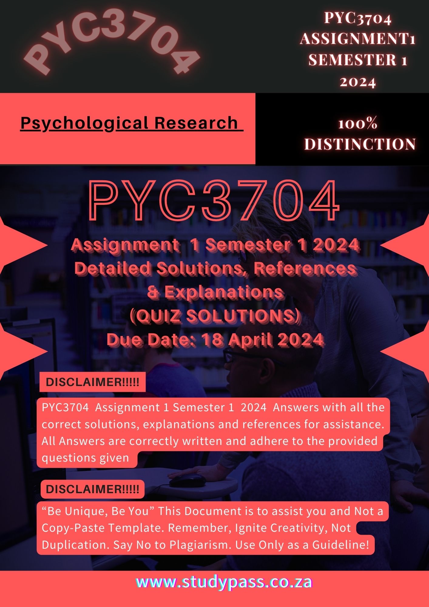 PYC3704 Assignment 1 Semester 1 2024 Detailed Solutions, References and Explanations:(QUIZ SOLUTIONS)ย  (Due Date: 18 April 2024)