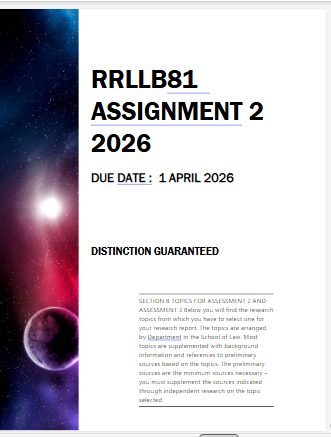 RRLLB81 Assignment 2 (5 TOPICS) 2026 | Due 1 April 2026 – Distinction Guaranteed. SECTION B TOPICS FOR ASSESSMENT 2 AND ASSESSMENT 3 Below you will find the research topics from which you have to select one for your research report. The topics are arranged by Department in the School of Law. Most topics are supplemented with background information and references to preliminary sources based on the topics. The preliminary sources are the minimum sources necessary – you must supplement the sources indicated through independent research on the topic selected. NOTE: You are required to select one (1) topic from those listed and to base you’re your Assessment 2 and Assessment 3 for RRLLB81 on that same topic. You may not change topics once you have selected one. We are able to identify your specific assignment submissions and to verify that you keep to the same topic. The due dates and unique numbers for Assessment 2 and Assessment 3 will appear on the myUnisa module site for RRLLB81. Research topics: Department of Mercantile Law TOPIC ONE: Tax planning and impermissible tax avoidance Background A taxpayer is allowed to plan his financial affairs to reduce a tax liability. The arrangement of a taxpayer’s financial affairs could include, investing in tax-free savings accounts, contributing to retirement funds for tax purposes, employing a permissible tax deduction for business expenses and so on. Tax avoidance on the other hand entails an “arrangement” entered into with the sole purpose of deriving a tax benefit, and the transaction must have a tainted element. A taxpayer can incorporate a close corporation with the sole purpose of reducing a tax liability. This would be a legitimate business arrangement even if the sole purpose of the