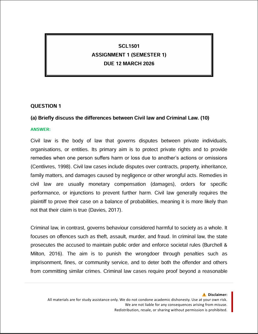 SCL1501 Assignment 1 Semester 1 2026 (Fully Answered) – Due March 2026 (VTSA)