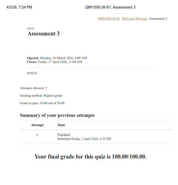 QMI1500 Assignment 3 Semester 1 2026 – Due 17 April 2026