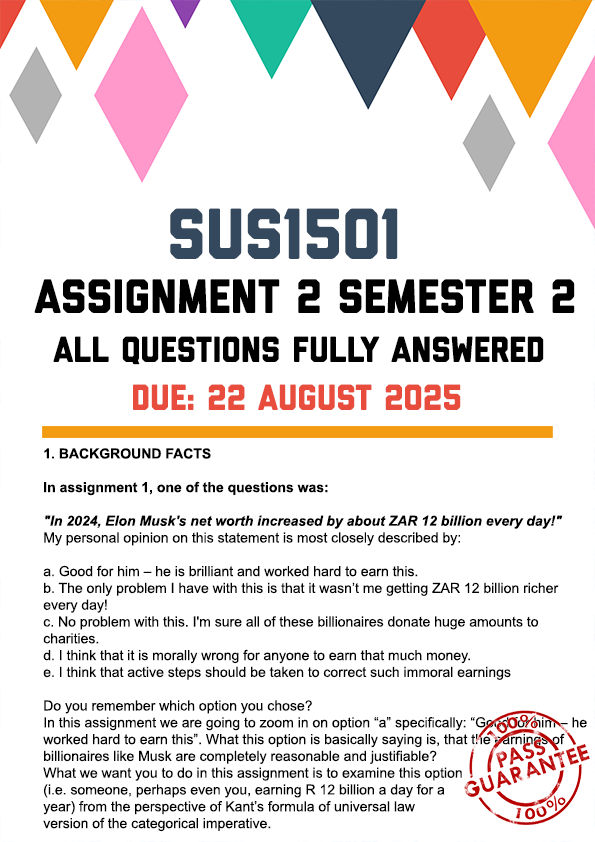 SUS1501 Assignment 2 Semester 2 Memo | Due 22 August 2025. All questions fully answered. 1. BACKGROUND FACTS