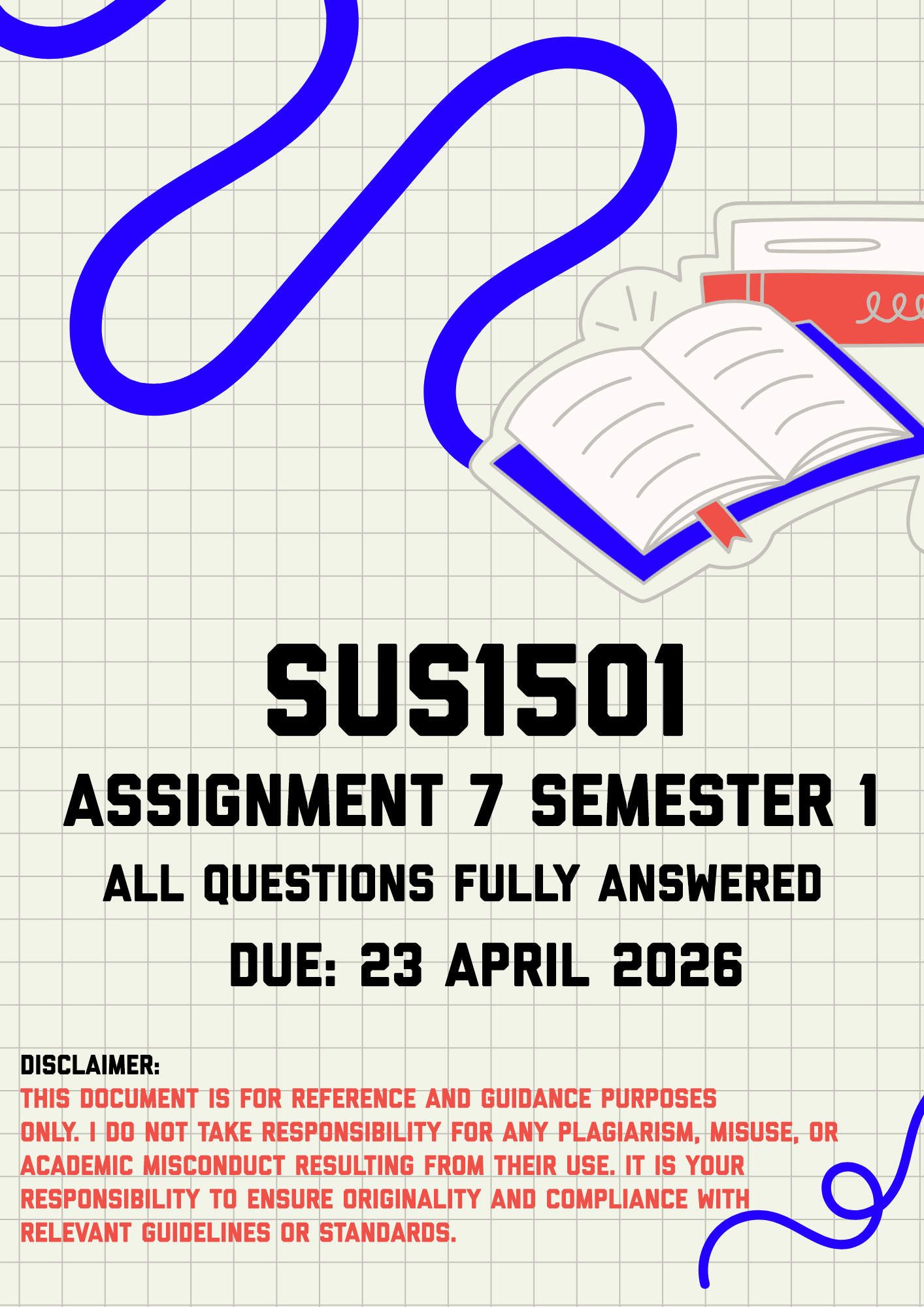 SUS1501 Assignment 7 Semester 1 Memo | Due 23 April 2026 . All questions fully answered. ASSESSMENT 07: SUSTAINABILITY?
