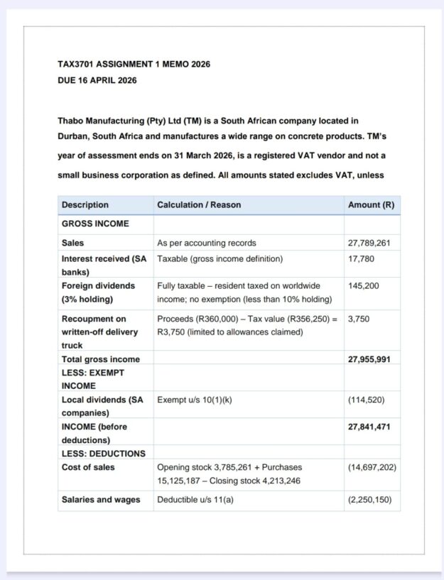 TAX3701 Assignment 1 2026 | Due 16 April 2026 Distinction Guaranteed
