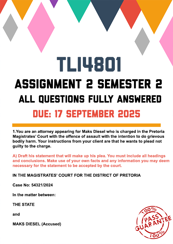 TLI4801 Assignment 2 Semester 2 Memo | Due 17 September 2025.