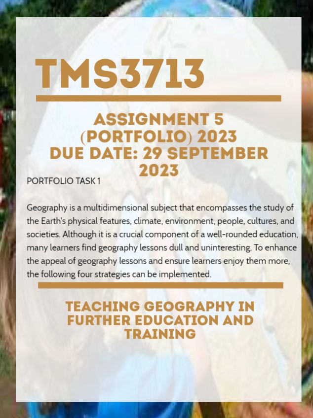 TMS3713 Assignment 5 (PORTFOLIO) 2023 Unique Number: Due Date: 29 September 2023 ((Complete Answers))