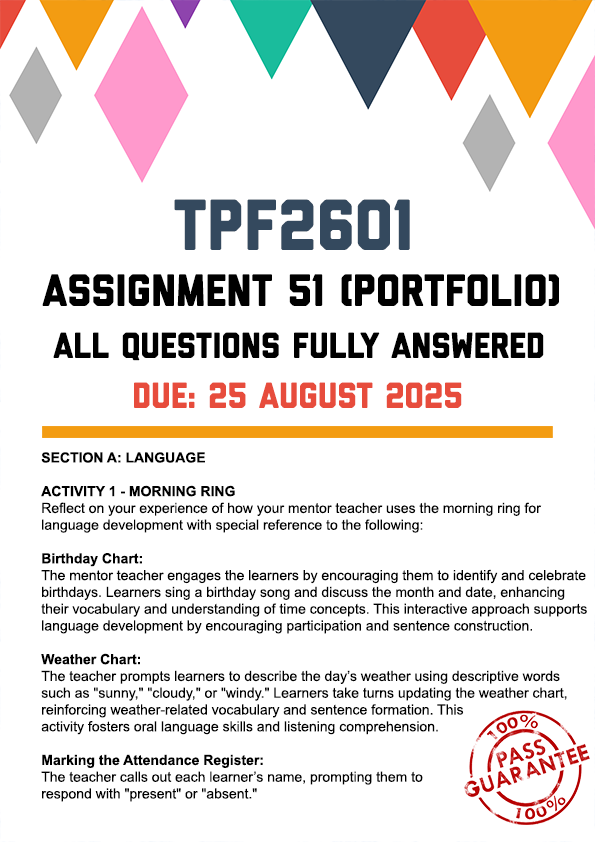 TPF2601 ASSIGNMENT  (PORTFOLIO 51) 2025 – FULLY ANSWERED (DUE 25 AUGUST 2025). This document contains a fully answered Portfolio with complete answers to all questions and tasks. Every section is carefully completed to ensure a guaranteed pass. Perfect for guaranteed pass, high marks, and peace of mind.