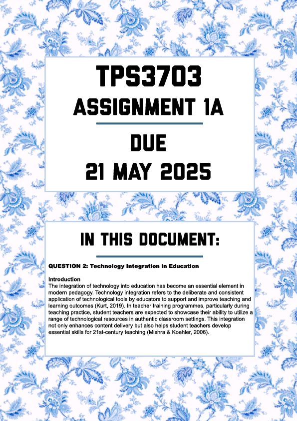 TPS3703 Assignment 1A Memo | Due 21 May 2025. All questions fully answered. QUESTION 1: School placement